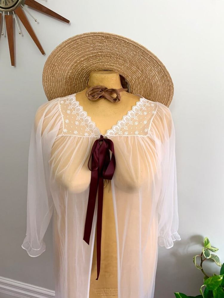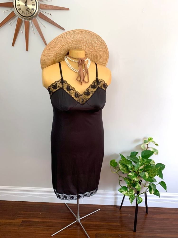…We do our best to provide as wide a range of both styles and sizes as is possible. It’s often very difficult to find plus-size vintage lingerie pieces – this isn’t helped by the lack of consistency in sizing, and in what constitutes “Plus Size.” We encourage all of our clients to look at every piece that interests them and see if the measurements are within the range that fits them comfortably – but we also understand that this involves lots of time, effort, and too often heartbreak.